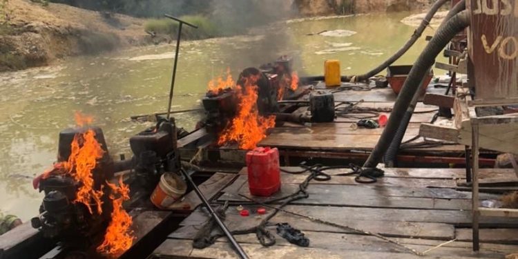 June 29, 2025 — An anti-galamsey task force of the Western Regional Coordinating Council (WRCC) has destroyed 75 chanfang machines on the Ankobra River.