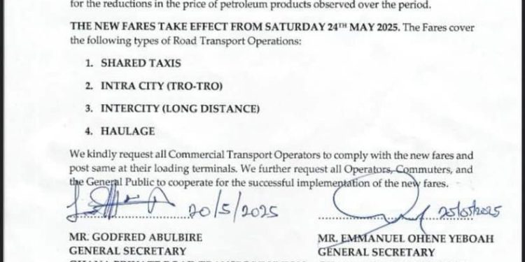 The decision was officially communicated through a joint press release signed by Mr. Godfred Abulbire, General Secretary of the Ghana Private Road Transport Union (GPRTU), and Mr. Emmanuel Ohene Yeboah, General Secretary of the Ghana Road Transport Coordinating Council (GRTCC).